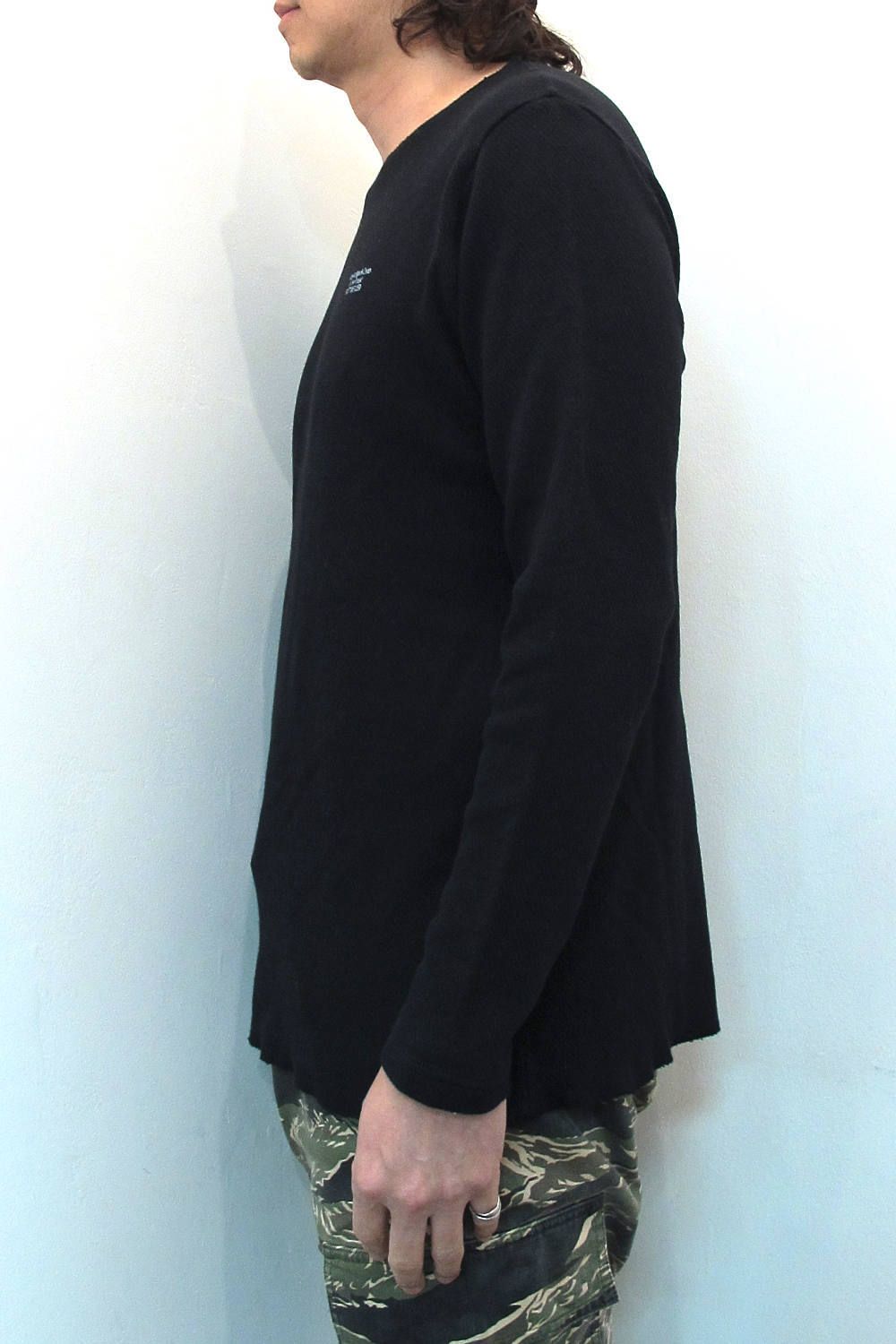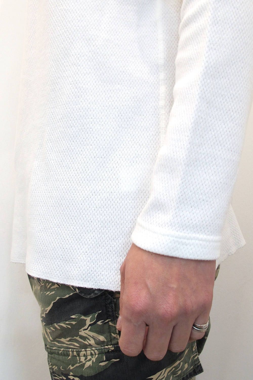 衿ぐりと裾のカットオフされた様なスッキリしたデザインとソフトで肌触りの良いオリジナルハニカムサーマルが特徴的で人気の定番アイテム。今シーズンも大変好評頂いております。