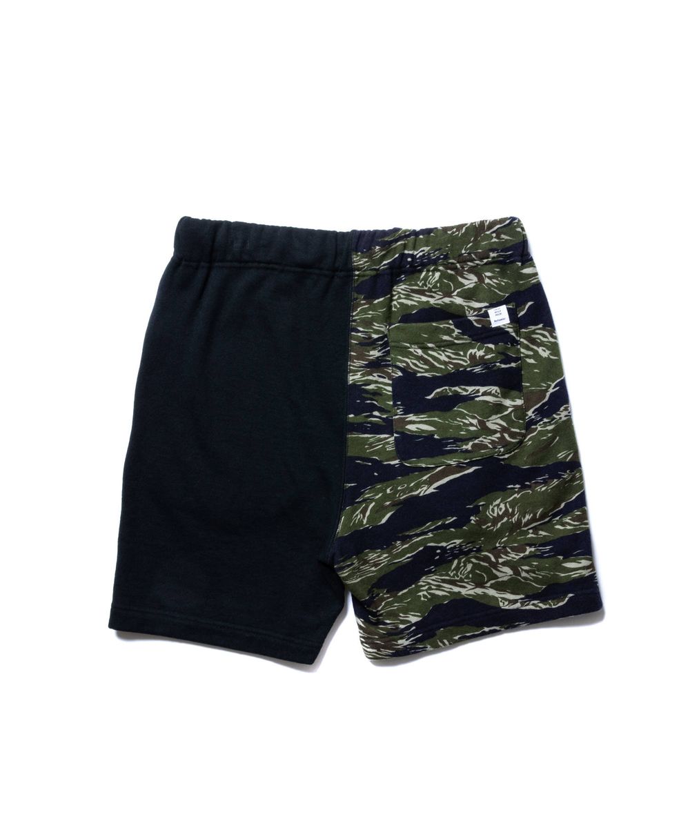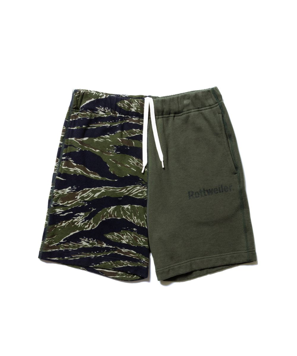 遊び心を感じさせるアシンメトリーデザインで仕上げたMILITARY SWEAT SHORTS。