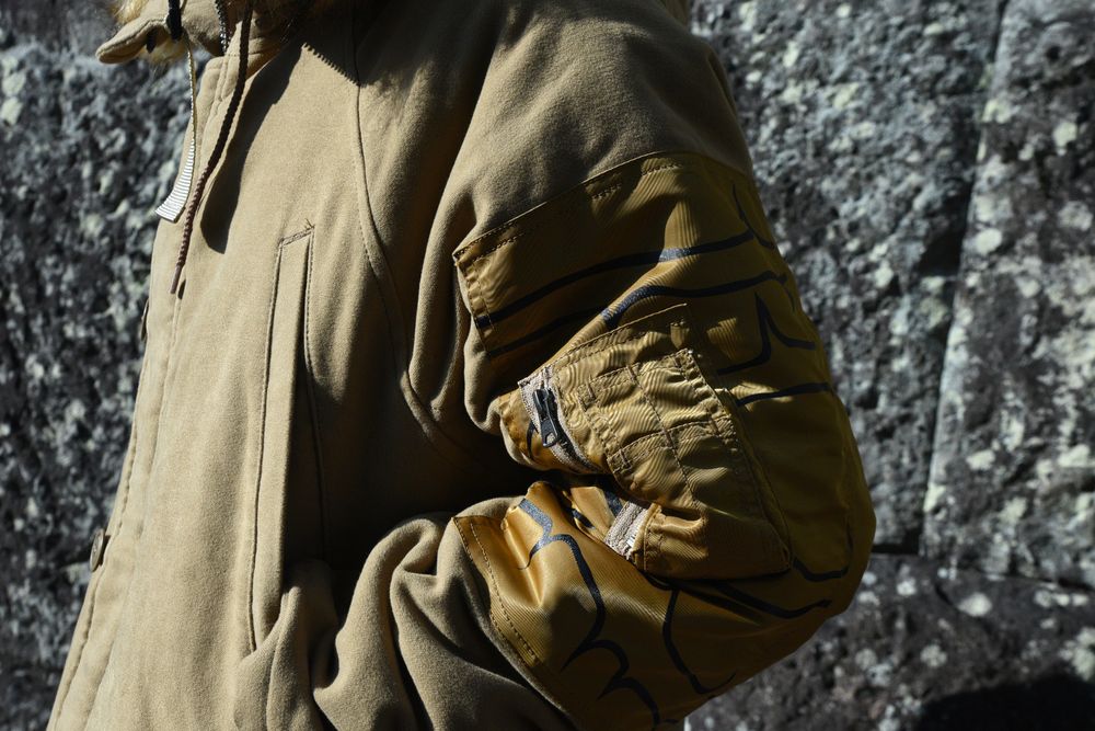 通常とは全く異なる素材感と袖のプリント等、W3-Bと名付けられた通り非常にオリジナリティの高い一着に。