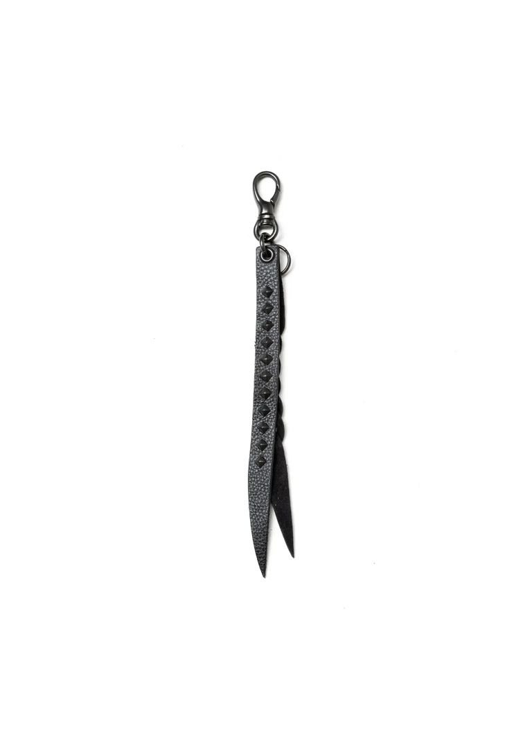 【ラスト1点】STUDS & KNITTING LEATHER SHORT KEY RING <TYPE B> (BLACK/BLACK) / スタッズ レザー キーリング
