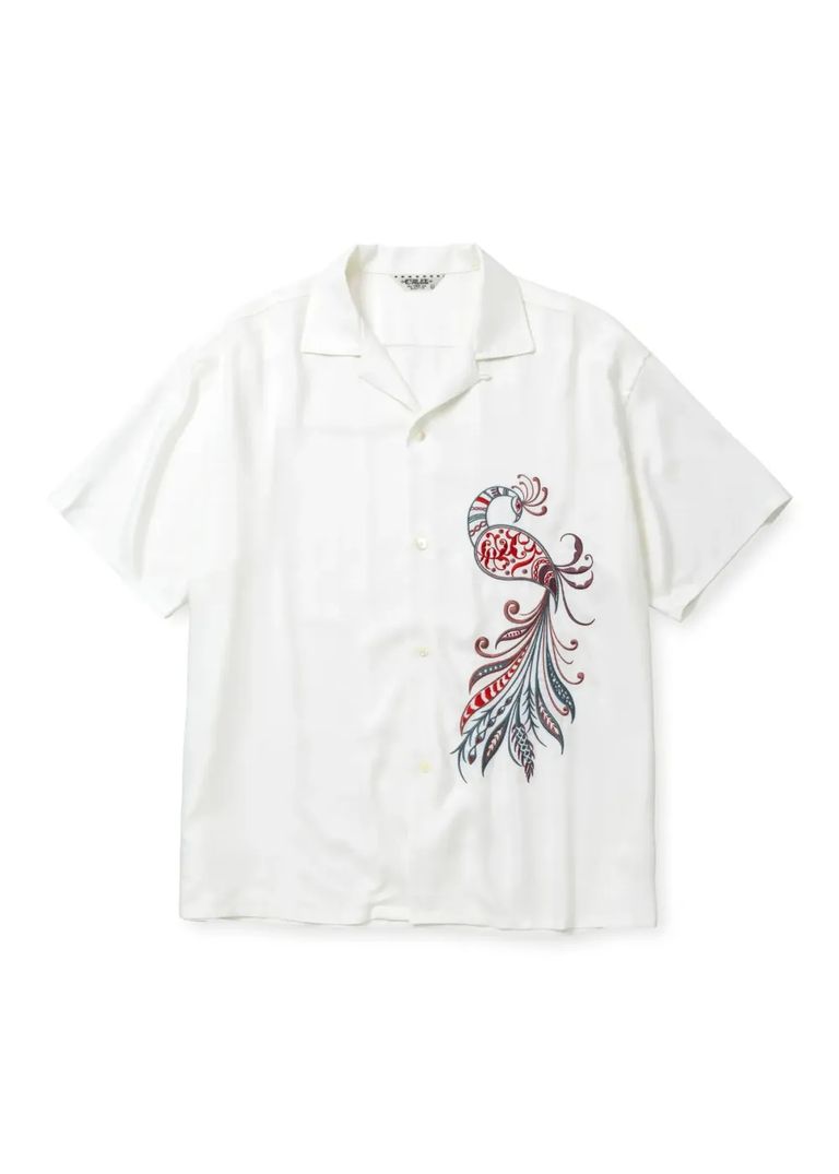 × MIHO MURAKAMI EMBROIDERY SH (WHITE) / ×MIHO MURAKAMI コラボ レーヨン オープンカラー シャツ