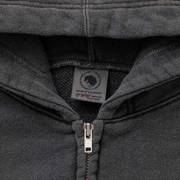 ピグメントダイを施したオリジナルジップスウェットパーカー。