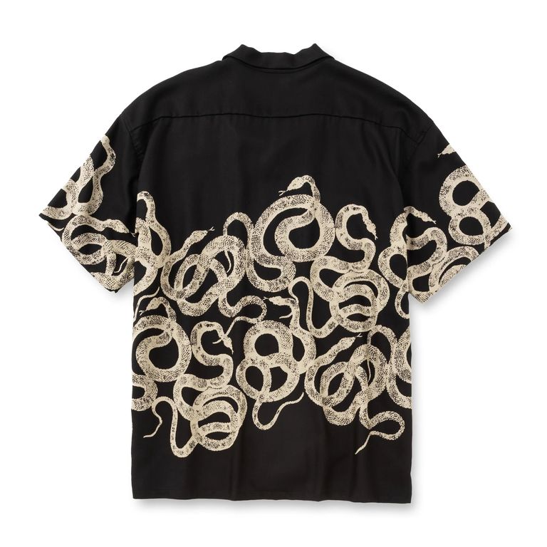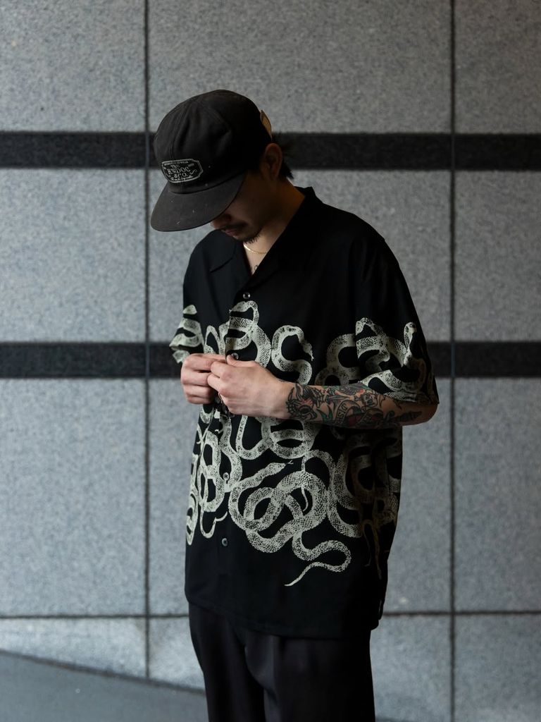 SNAKE PATTERN PANEL S/S SH (BLACK) / オリジナル スネークパターン オープンカラー シャツ