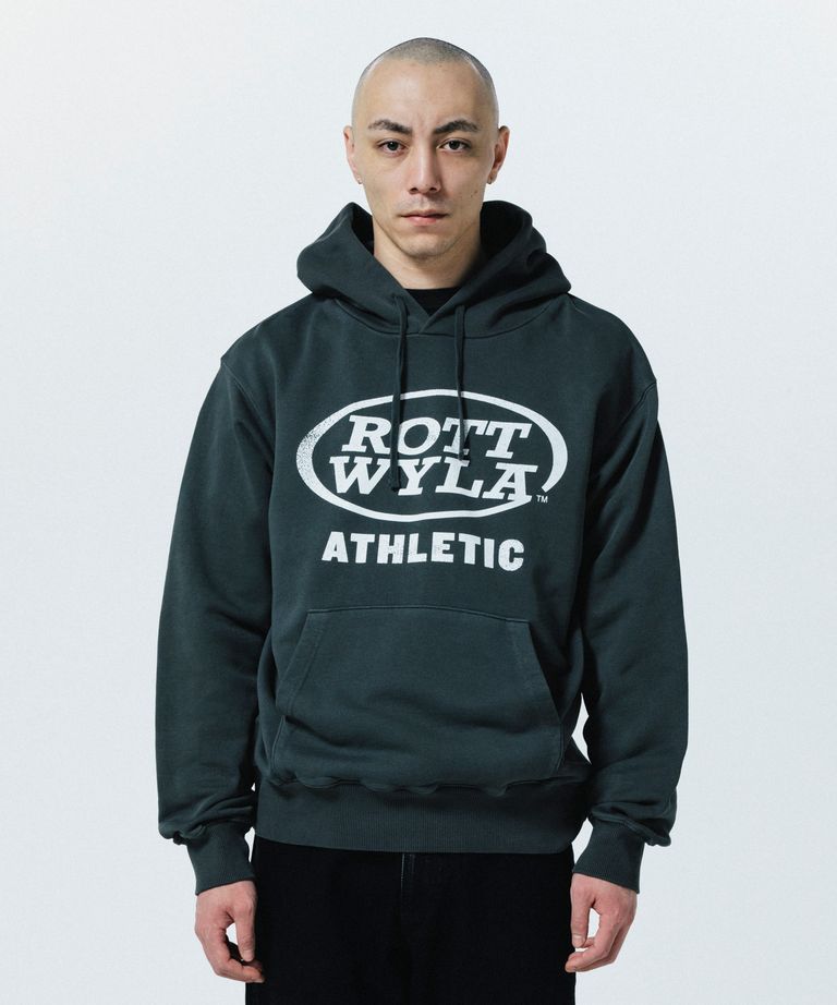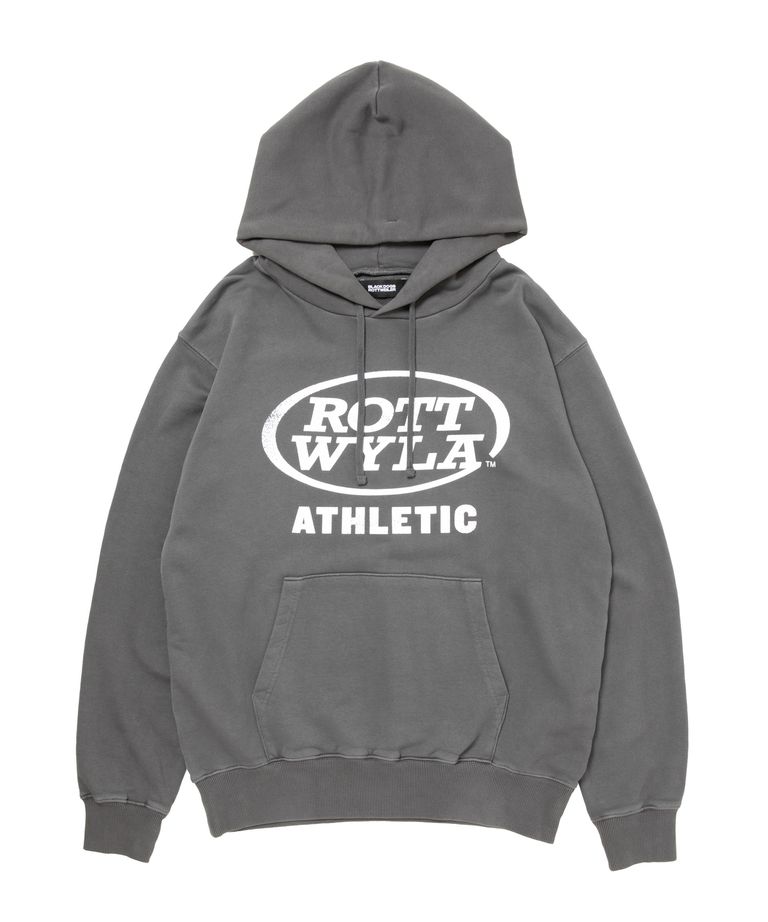 ATHLETIC PARKA (BLACK) / ロゴ プリント ピグメント スウェット パーカー